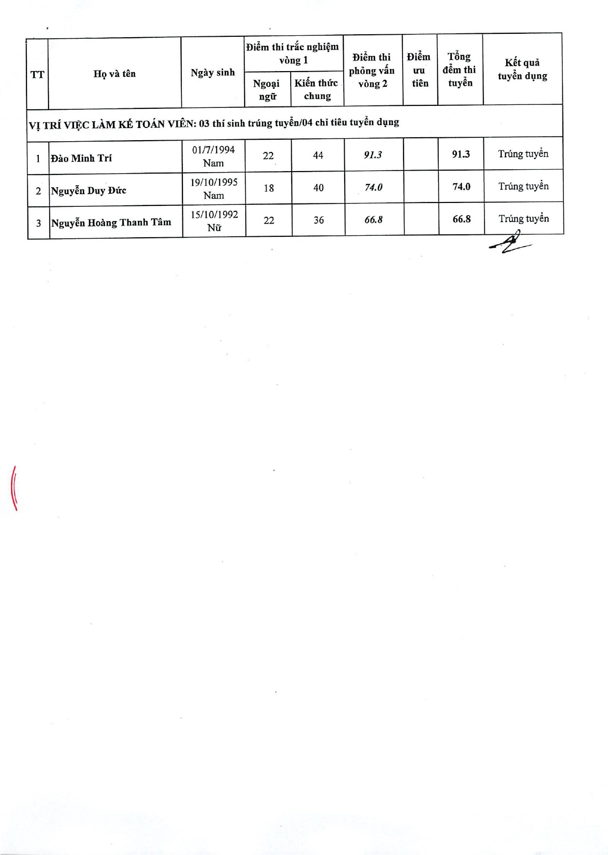 ĐTN: Căn cứ Quyết định số 171-QĐ/TWĐTN-BTC ngày 04/7/2023 của Bí thư thứ nhất BCH T.Ư Đoàn về việc phê duyệt kết quả thi tuyển công chức cơ quan Trung ương Đoàn năm 2023, Hội đồng thi tuyển công chức cơ quan Trung ương Đoàn năm 2023 thông báo công nhân kết quả trúng tuyển đối với 37 thí sinh (có danh sách kèm theo).