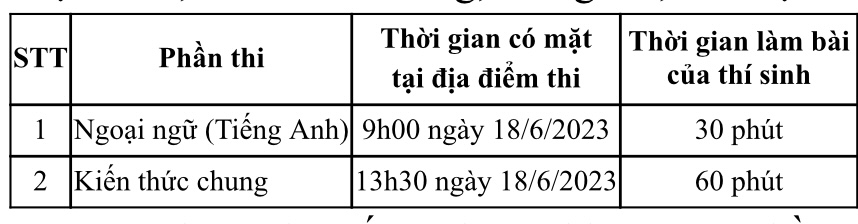- Thời gian thí sinh có mặt tại địa điểm thi: 7h30 ngày 18/6/2023