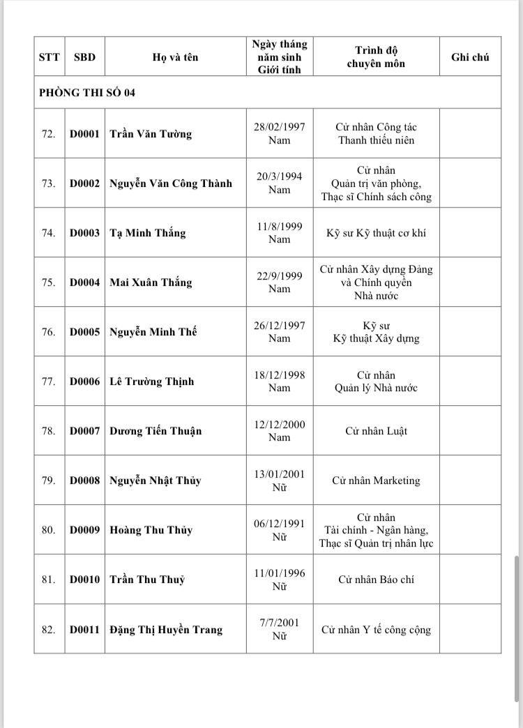 Thí sinh mang theo Thẻ căn cước công dân hoặc các giấy tờ tùy thân hợp pháp khác có dán ảnh để kiểm tra trước khi vào phòng thi.