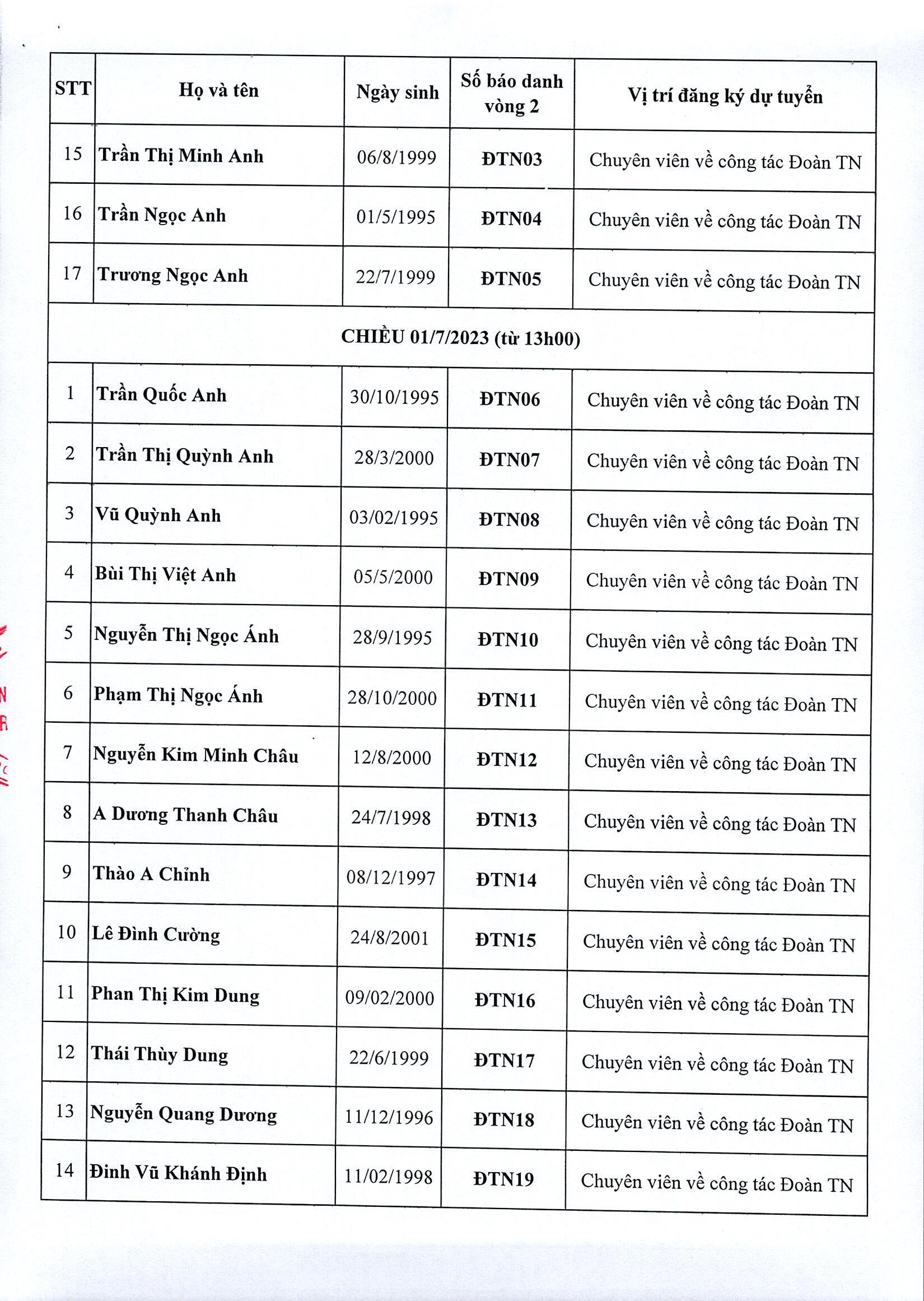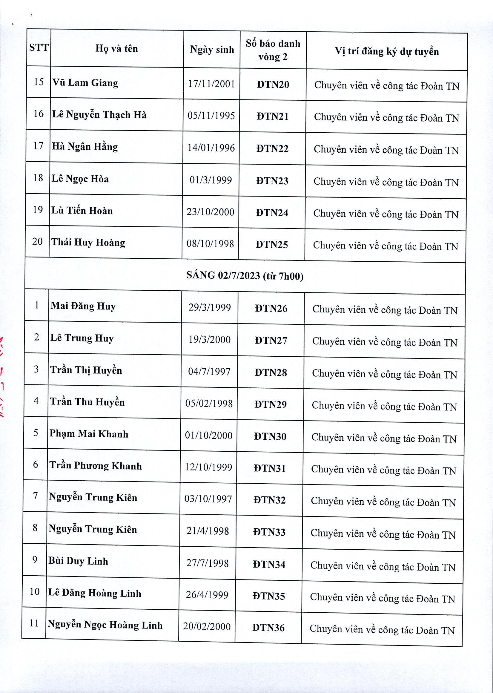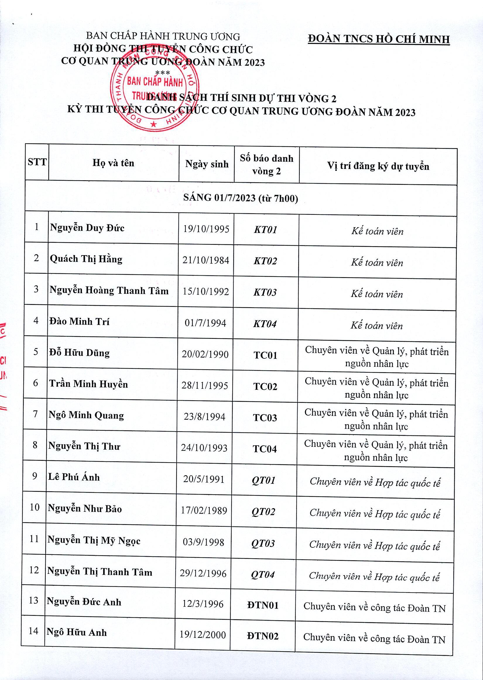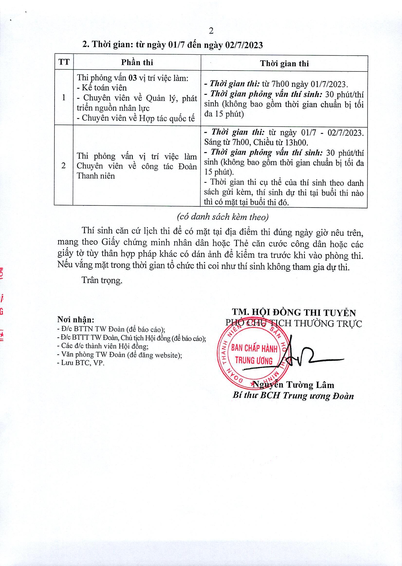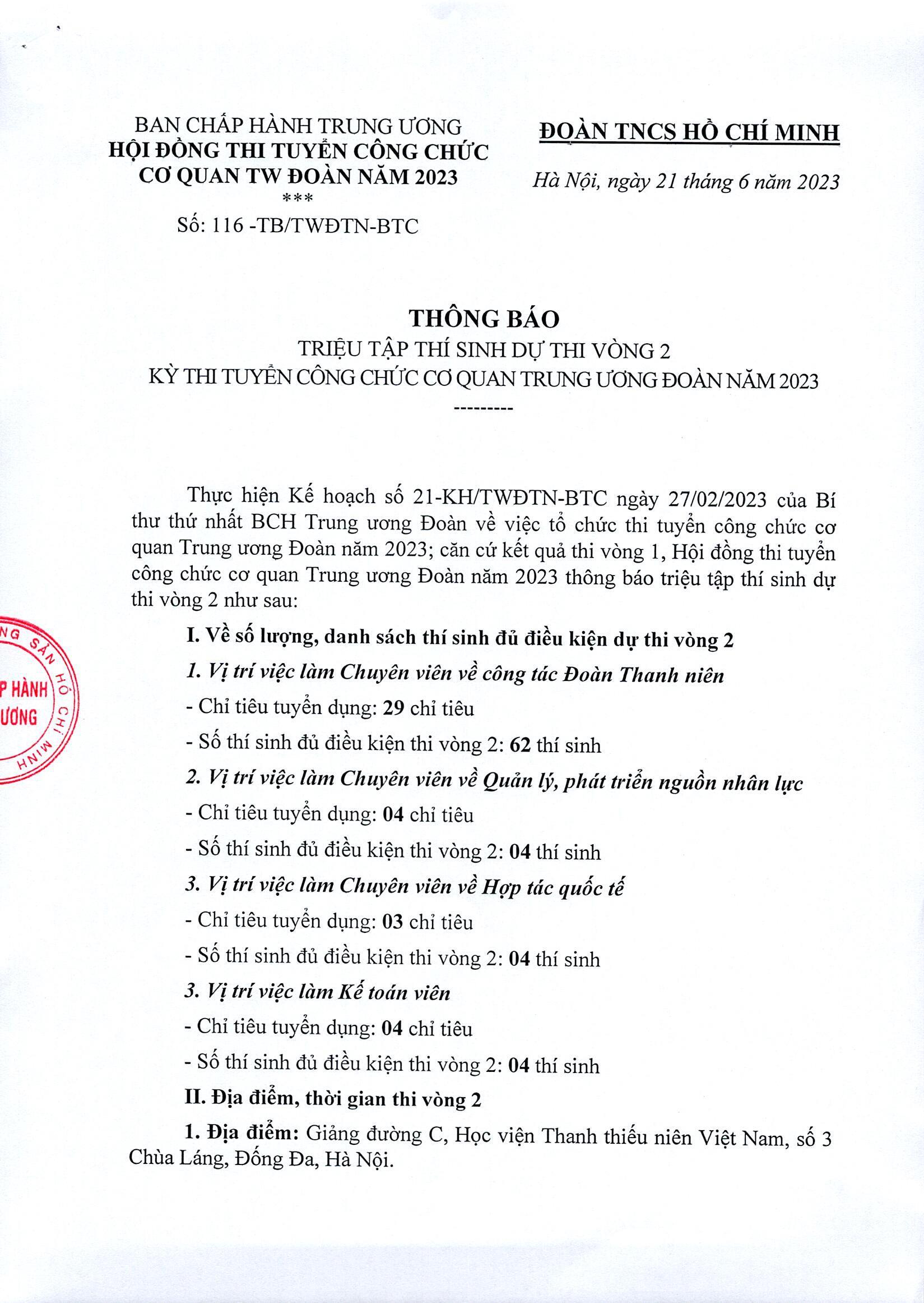 Thông báo triệu tập thí sinh dự thi vòng 2 kỳ thi tuyển công chức cơ quan TƯ Đoàn năm 2023. Xem tại đây