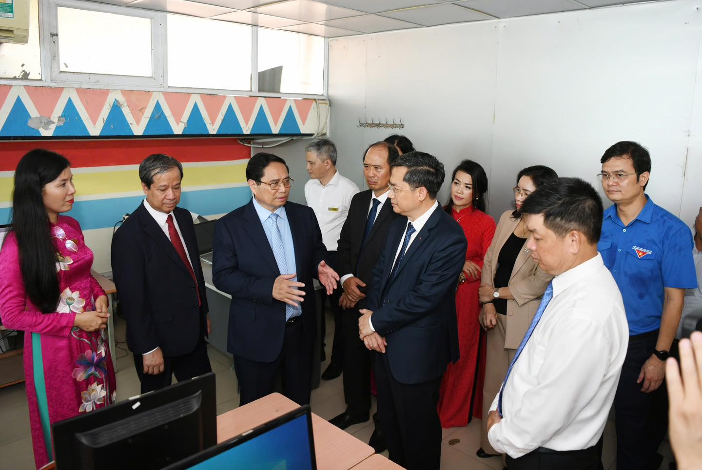 Thủ tướng thăm hỏi và động viên các thầy cô giáo, các em học sinh nhà trường