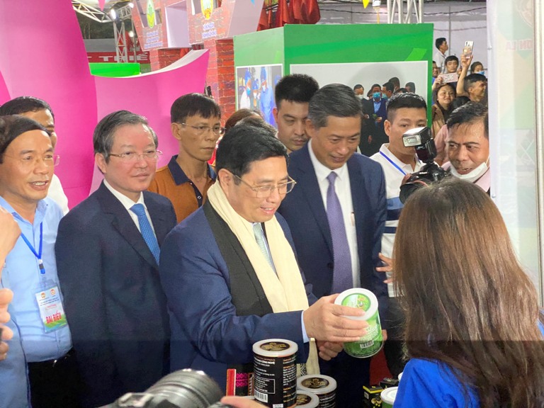 Gian hàng Thanh niên Sơn La được đón nhận tình cảm và sự quan tâm của lãnh đạo Đảng, Nhà nước, đồng chí Phạm Minh Chính - Ủy viên Bộ Chính trị, Thủ tướng Chính phủ nước Cộng hòa xã hội chủ nghĩa Việt Nam