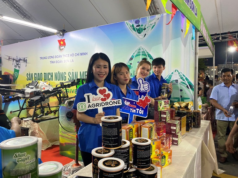Trung ương Đoàn, Tỉnh đoàn Sơn La và Công ty Agridrone Việt Nam tổ chức các gian hàng giới thiệu, quảng bá sản phẩm Ocop của thanh niên Sơn La tới đông đảo người tiêu dùng trong và ngoài nước. Gian hàng được thiết kế độc đáo, sáng tạo, kết hợp giữa công nghệ Sàn giao dịch vũ trụ ảo Metaverse và những sản phẩm thực tế đảm bảo chất lượng, đạt tiêu chuẩn OCOP, gian hàng Thanh niên Sơn La đã thu hút được đông đảo người tiêu dùng trong và ngoài tỉnh đến thăm, trải nghiệm.