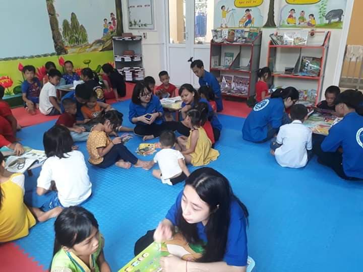 Các em học sinh tại Nga My hào hứng tham gia đọc sách của thư viện ngày hè