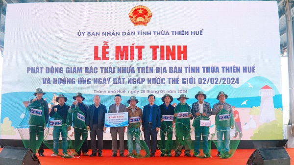 Lễ Mittinh phát động giảm rác thải nhựa trên địa bàn tỉnh và hưởng ứng Ngày Đất ngập nước Thế giới 02/02/2024 tại Cảng cá Thuận An, phường Thuận An