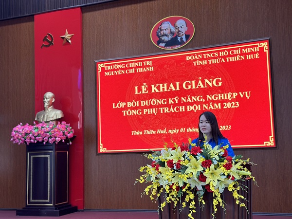 Phát biểu tại Lễ khai giảng, đồng chí Hoàng Thị Thùy Linh - Phó Bí thư Thường trực Tỉnh Đoàn, Chủ tịch Hội đồng Đội tỉnh yêu cầu các giáo viên tham dự lớp tập huấn nghiêm túc tiếp thu các chuyên đề do báo cáo viên trình bày và kết hợp nghiên cứu tài liệu để bổ sung thêm kiến thức, nâng cao trình độ vận dụng được các kiến thức, kỹ năng để tổ chức, hướng dẫn, triển khai có hiệu quả các hoạt động Đội trong và ngoài nhà trường.