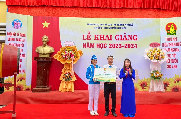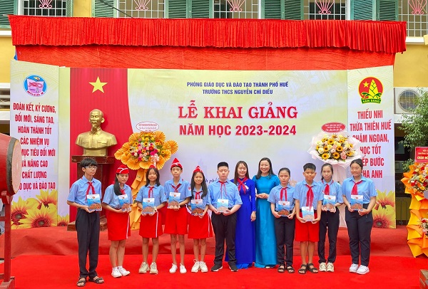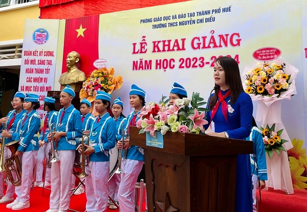 Hòa chung trong không khí hân hoan, náo nức của ngày tựu trường năm học mới 2023 - 2024, sáng 05/9, trong khuôn khổ Lễ khai giảng của trường THCS Nguyễn Chí Diểu, thành phố Huế, Hội đồng Đội tỉnh tổ chức Phát động chủ đề năm học 2023 - 2024.