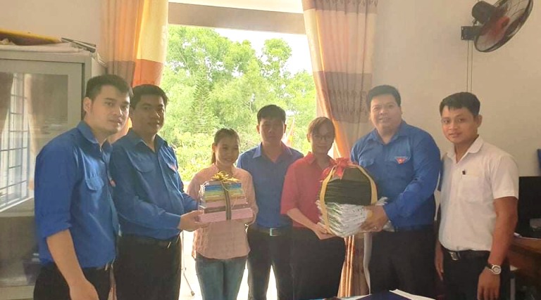 Tặng quà cho các BCH Đoàn các xã mới thành lập
