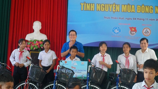 Trao tặng 15 chiếc xe đạp cho 15 em học sinh có hoàn cảnh khó khăn tại Trường THCS bán trú Long Quảng