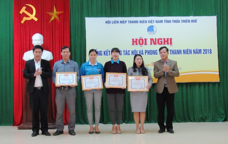 Để kịp thời động viên, khích lệ các tập thể, cá nhân tiếp tục phát huy vai trò của mình trong công tác Hội và phong trào thanh niên. Ủy ban Hội LHTN Việt Nam tỉnh đã khen thưởng 10 tập thể và 09 cá nhân có thành tích xuất sắc trong công tác Hội và phong trào thanh niên năm 2018.