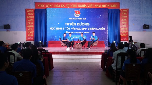 Chương trình đã lắng nghe chia sẻ của 03 gương học sinh tiêu biểu: Bạn Nguyễn Minh Triết (Học sinh trường THPT Chuyên Quốc học, thành phố Huế, người đã xuất sắc chiến thắng trận thi quý II, ghi tên vào Chung kết năm Đường lên đỉnh Olympia năm thứ 23); bạn Trương Thị Tuệ My (Học sinh trường THPT Thừa Lưu, huyện Phú Lộc, được biết, Tuệ My là một học sinh xuất sắc với điểm số rất cao, môn Toán là 9.8/10, môn Văn 9.1/10, môn Ngoại ngữ 9.9/10, tổng điểm trung bình là 9.7/10); bạn Nguyễn Ngọc Diễm Quỳnh (Học sinh trường THPT Phú Bài, thị xã Hương Thủy với những thành tích xuất sắc đạt được trong năm học 2022 - 2023).