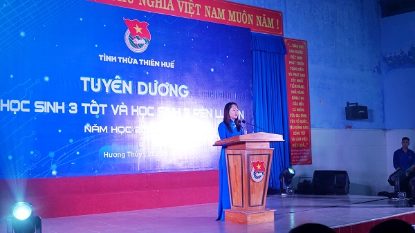 Phát biểu tại chương trình, đồng chí Hoàng Thị Thùy Linh - Phó Bí thư Thường trực Tỉnh Đoàn, Chủ tịch Hội Đồng đội tỉnh hy vọng đây sẽ là một kỷ niệm đẹp trong hành trang của những năm tháng ngồi trên ghế nhà trường, là sự động viên giúp các em tiếp tục phấn đấu, rèn luyện, gặt hái được nhiều thành công lớn hơn, thật sự trở thành những người tiên phong trong phong trào thi đua học tập, rèn luyện của trường, của lớp, trở thành những công dân ưu tú, có bản lĩnh, góp phần xây dựng, phát triển quê hương Thừa Thiên Huế trở thành thành phố trực thuộc Trung ương trên nền tảng bảo tồn, phát huy giá trị di sản Cố đô và bản sắc văn hóa Huế, với đặc trưng văn hóa, di sản, sinh thái, cảnh quan, thân thiện môi trường và thông minh theo tinh thần Nghị quyết số 54 của Bộ Chính trị.
