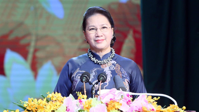 Chủ tịch Quốc hội Nguyễn Thị Kim Ngân đọc diễn văn tại lễ kỷ niệm 130 năm ngày sinh Trưởng ban thường trực Quốc hội Bùi Bằng Đoàn tổ chức vào sáng 16/9 |