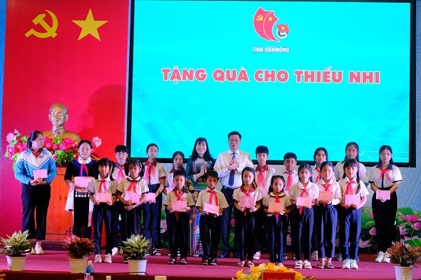Thường trực Tỉnh ủy trao quà cho thiếu nhi