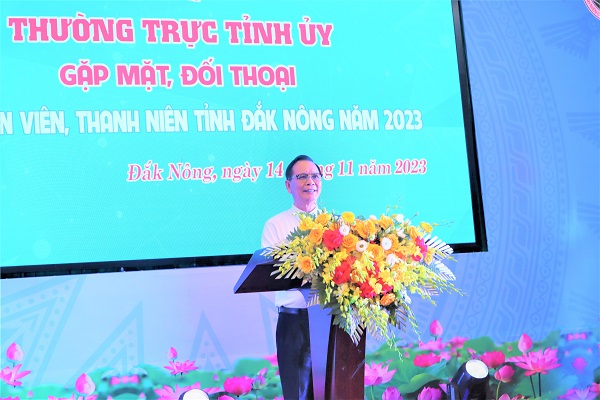 Phát biểu kết luận chương trình gặp gỡ, đối thoại với đoàn viên thanh niên tỉnh, đồng chí Ngô Thanh Danh - Bí thư Tỉnh ủy, Trưởng Đoàn ĐBQH tỉnh ghi nhận các ý kiến, biểu dương sự đóng góp của tuổi trẻ Đắk Nông vào sự phát triển chung của tỉnh.