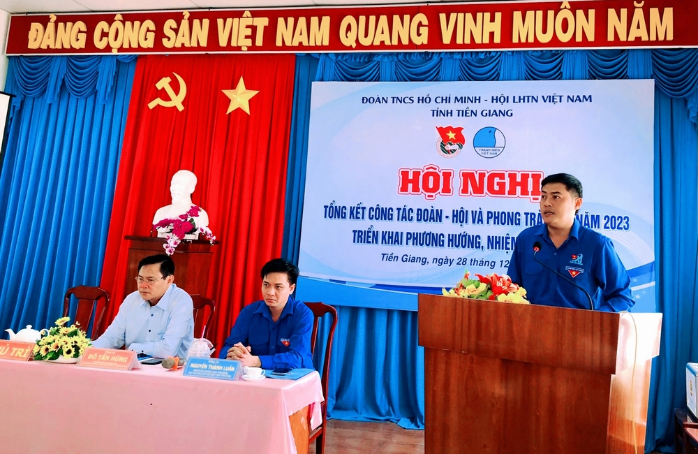 Phát biểu chỉ đạo hội nghị, đồng chí Đỗ Tấn Hùng - Uỷ viên Ban Thường vụ, Trưởng ban Ban Dân vận Tỉnh ủy đề nghị Ban Thường vụ Tỉnh Đoàn quan tâm đến công tác giáo dục chính trị, tư tưởng cho đoàn viên, thanh niên; đồng thời cần chú trọng công tác đoàn kết, tập hợp thanh niên, đặc biệt là thanh niên công nhân, học sinh, sinh viên, tín đồ tôn giáo, thanh niên vùng sâu vùng xa, vùng biên giới biển; công tác tuyên truyền, tổ chức Đại hội Hội các cấp, Đại hội Đại biểu Hội LHTN Việt Nam tỉnh Tiền Giang lần thứ VII, nhiệm kỳ 2024 - 2029.