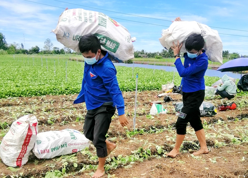 Trong chương trình “Áo xanh ra đồng -Nhà nông nhẹ gánh”, thanh niên hỗ trợ thu hoạch và tiêu thụ nông sản đã đến mùa vụ hộcác nhà nông có số lượng lớn, nông dân đã vào cách ly tập trung. Phối hợp với đội hình “Shipper áo xanh” tiêu thụ nông sản theo đơn hàng đã đặt trước, vận chuyển đến các chợ dân sinh, “Phiên chợ nghĩa tình”,…