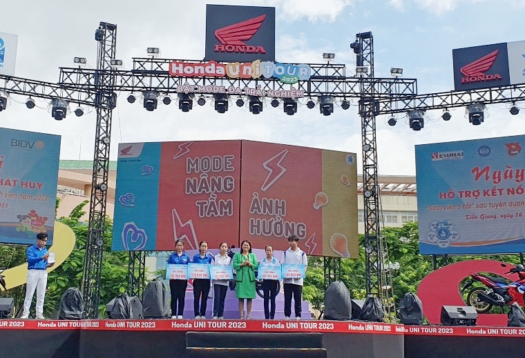Trong chương trình Tỉnh đoàn đã kết nối các công ty, doanh nghiệp như: Công ty TNHH Esuhai, BIDV chi nhánh Tiền Giang, Viễn thông Tiền Giang, FPT Tiền Giang, Mobifone Tiền Giang, Viettinbank chi nhánh Tiền Giang,… chia sẻ những nội dung hỗ trợ cho sinh viên trong năm học mới, tạo cơ hội để sinh viên được tiếp cận với các doanh nghiệp trong chính sách hỗ trợ và đồng hành cùng học sinh, sinh viên, đồng thời, tư vấn, thông tin những cơ hội nghề nghiệp triển vọng, kết nối lao động trẻ học tập và lao động tại Nhật.