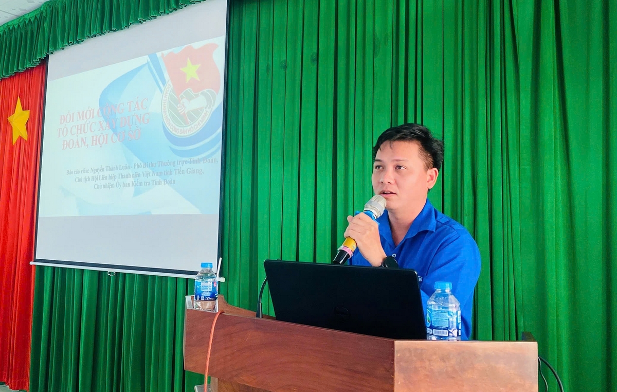 Đồng chí Nguyễn Thành Luân – Phó Bí thư Thường trực Tỉnh Đoàn, Chủ tịch Hội LHTN Việt Nam tỉnh báo cáo chuyên đề đầu tiên