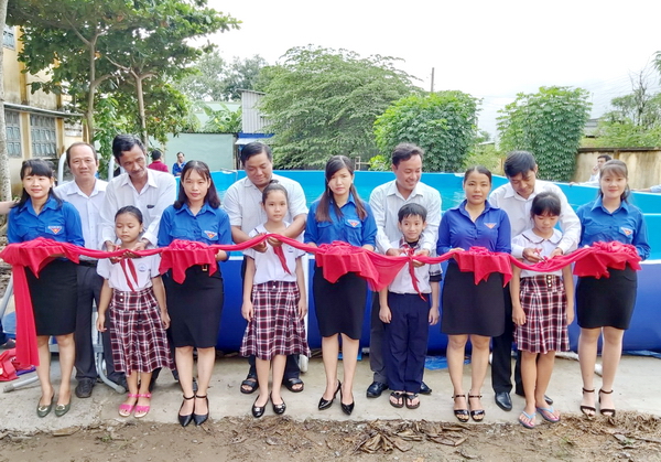 Cắt băng khánh thành hồ bơi di động cho thiếu nhi |