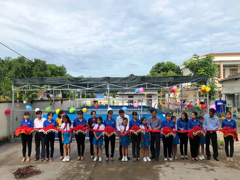 Đại biểu cắt băng khánh thành hồ bơi di động
