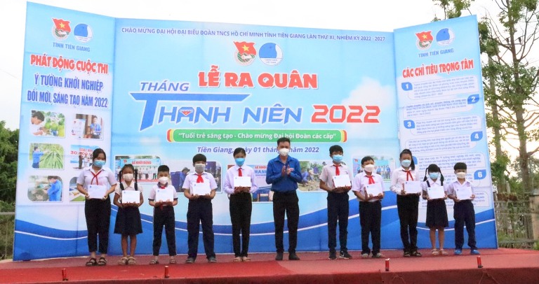 Tại Lễ khởi động, Ban Thường vụ Tỉnh Đoàn trao tặng các công trình thanh niên, mở đầu cho Tháng Thanh niên với các hoạt động thiết thực, hiệu quả, mang lại nhiều giá trị làm lợi cho cộng đồng, gồm có: Tuyến đường thanh niên “Sáng – xanh – sạch – an ninh” với việc trang bị hệ thống chiếu sáng, trồng cây làm đẹp cảnh quang, hỗ trợ xã xây dựng nông thôn mới trị giá 60 triệu đồng; 01 “Vườn cây nghĩa tình” hỗ trợ cây giống cho gia đình chính sách trên địa bàn xã Tam Hiệp, huyện Châu Thành; 01 cầu giao thông nông thôn trị giá 500 triệu đồng; 01 Nhà nhân ái cho gia đình có hoàn cảnh khó khăn về nhà ở tại xã Tân Hương, huyện Châu Thành kinh phí 40 triệu đồng; 10 suất học bổng cho các em thiếu nhi có hoàn cảnh khó khăn, vươn lên học tốt. Ngoài ra, Công ty TNHH Nha Khoa Sài Gòn Tâm Đức trao tặng nguồn lực 100 triệu đồng đến đoàn thanh niên tỉnh Tiền Giang, góp phần thực hiện các công trình, phần việc thanh niên, mang đến thành công chung của tháng thanh niên năm 2022.Tổng giá trị làm lợi của chương trình khởi động Tháng Thanh niên năm 2022 là gần 2tỷ đồng.