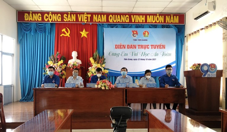 Cũng trong sáng ngày 22/10, Ban Thường vụ Tỉnh Đoàn, Hội đồng Đội tỉnh tổ chức Diễn đàn trực tuyến với chủ đề “Cùng em vui học an toàn”. Diễn đàn được phát trực tiếp trên trang thông tin điện tử facebook “Tuổi trẻ Tiền Giang”. Tham gia diễn đàn có đồng chí Nguyễn Quang Minh - Phó Bí thư Tỉnh Đoàn, Chủ tịch Hội đồng Đội tỉnh cùng với các diễn giả là các đồng chí đại diện các ngành có liên quan; đại diện quý thầy, cô; giáo viên Tổng phụ trách Đội và Bí thư Đoàn trường THPT trên địa bàn tỉnh.