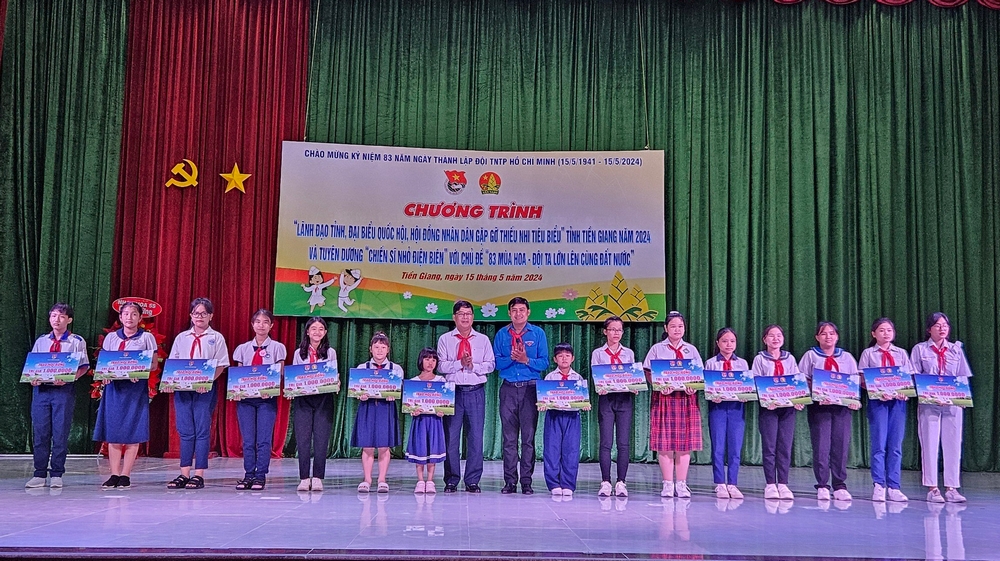 Nhằm để ghi nhận các cá nhân có thành tích tiêu biểu trong công tác Đội và phong trào thiếu nhi và chuỗi hoạt động 70 năm Chiến thắng Điện Biên Phủ. Hội đồng Đội tỉnh quyết định tặng Bằng khen của Hội đồng Đội tỉnh cho 20 em đội viên tiêu biểu tỉnh Tiền Giang năm học 2023 - 2024 đạt danh hiệu “Chiến sĩ nhỏ Điện Biên”.