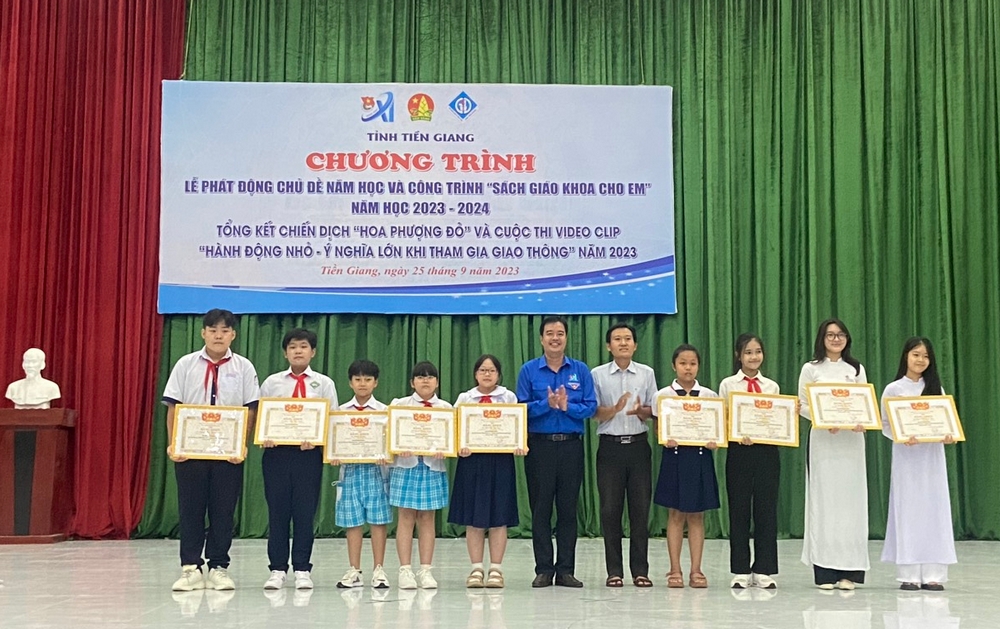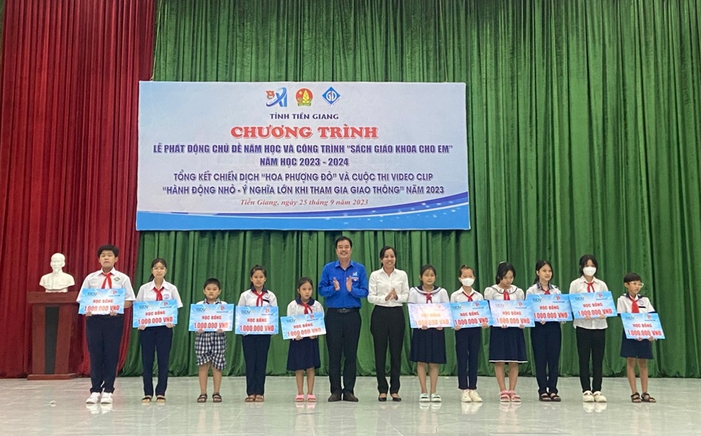 Dịp này, Ban Tổ chức Cuộc thi video clip “Hành động nhỏ - Ý nghĩa lớn khi tham gia giao thông” năm học 2022 - 2023 trao giải cho 11 tập thể và 16 cá nhân đoạt giải cuộc thi. BIDV Tiền Giang trao 11 suất học bổng (1 triệu đồng/suất) cho các em học sinh khó khăn học tốt./.