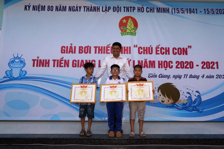 ĐTN: Thiết thực chào mừng kỷ niệm 80 năm ngày thành lập Đội TNTP Hồ Chí Minh (15/5/1941-15/5/2021), ngày 11/4/2021, tại Công viên nước Nhà thiếu nhi tỉnh Tiền Giang, Ban Thường vụ Tỉnh Đoàn, Hội đồng Đội tỉnh tổ chức Giải bơi thiếu nhi “Chú ếch con” tỉnh Tiền Giang lần thứ I năm học 2020-2021.