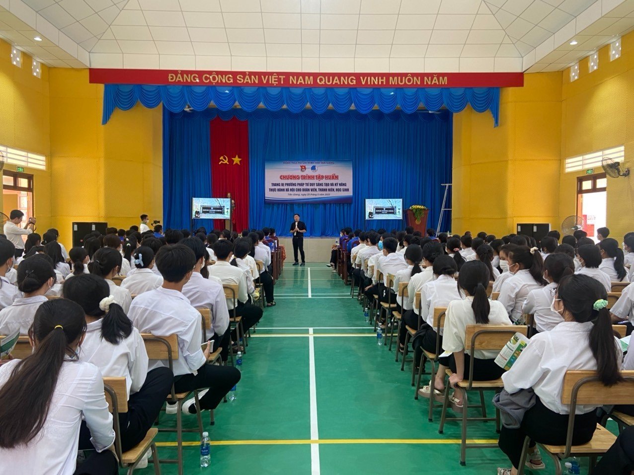 Tại buổi tập huấn, cho đoàn viên, thanh niên, học sinh được thầy Nguyễn Mai Lâm - Phó hiệu trưởng Trường Đại học Tân Tạo truyền tải các nội dung về: Khái niệm cơ bản về tư duy sáng tạo, vai trò của tư duy sáng tạo, các phương pháp rèn luyện tư duy sáng tạo, hãy hành động, cân bằng giữa thực tế và lý tưởng để các đoàn viên thanh niên mạnh dạn thực hiện những ý tưởng mới vào thực tiễn, chìa khóa tâm lý - vượt ải mùa thi,…và tổ chức thảo luận nhóm bằng Sơ đồ tư duy về các chủ đề như: tình nguyện, sản phẩm tương lai, chìa khóa tâm lý mùa thi,… qua chương trình tập huấn, các học viên đã được trang bị những kỹ năng, phương pháp cần thiết về tư duy sáng tạo, thực hành xã hội để ứng dụng vào học tập và thực tiễn cuộc sống.
