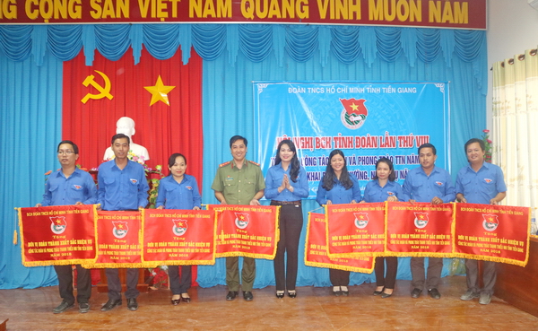 Với những thành tích đã đạt được, tỉnh Đoàn Tiền Giang vinh dự nhận bằng khen xuất sắc trong công tác Đoàn và phong trào TTN năm 2018 do Trung ương trao tặng; Tỉnh đoàn cũng tặng 8 cờ thi đua và 20 bằng khen cho các cá nhân và tập thể xuất sắc trong họat động công tác Đoàn và phong trào thanh thiếu nhi tỉnh năm 2018.