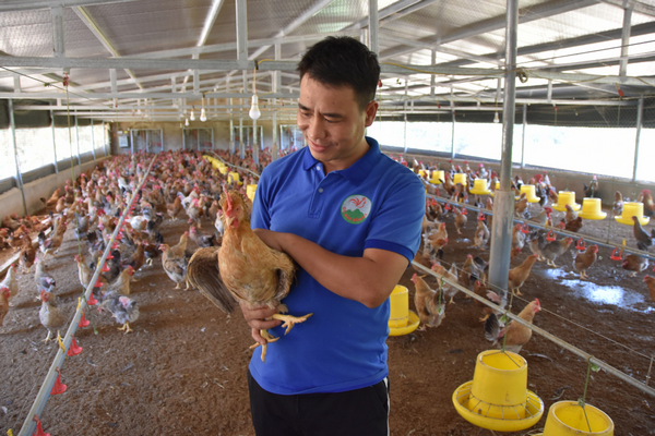 Anh Nguyễn Văn Tuyền, Giám đốc HTX Sản xuất nông nghiệp Tuyền Hiền (xã Quảng Tân, huyện Đầm Hà) giới thiệu mô hình nuôi gà bản địa