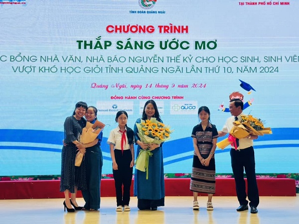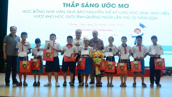 Nhằm ghi nhận những đóng góp tích cực của quý doanh nghiệp và những doanh nhân yêu quê hương Quảng Ngãi trong hoạt động hỗ trợ học bổng cho học sinh vượt khó, học tốt trên địa bàn tỉnh, dịp này, Ủy ban nhân dân tỉnh Quảng Ngãi trao tặng Bằng khen cho 4 tập thể và 10 cá nhân đã có thành tích đóng góp tích cực cho Học bổng “Thắp sáng ước mơ thanh thiếu nhi Quảng Ngãi”.