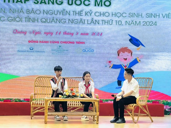Giao lưu với 2 gương học sinh vượt khó, giàu nghị lực, em Hồ Văn Kiệt, lớp 12C1, Trường phổ thông dân tộc nội trú THPT tỉnh và em Nguyễn Hà Anh Thư, lớp 7C, Trường THCS Lê Khiết, huyện Nghĩa Hành.