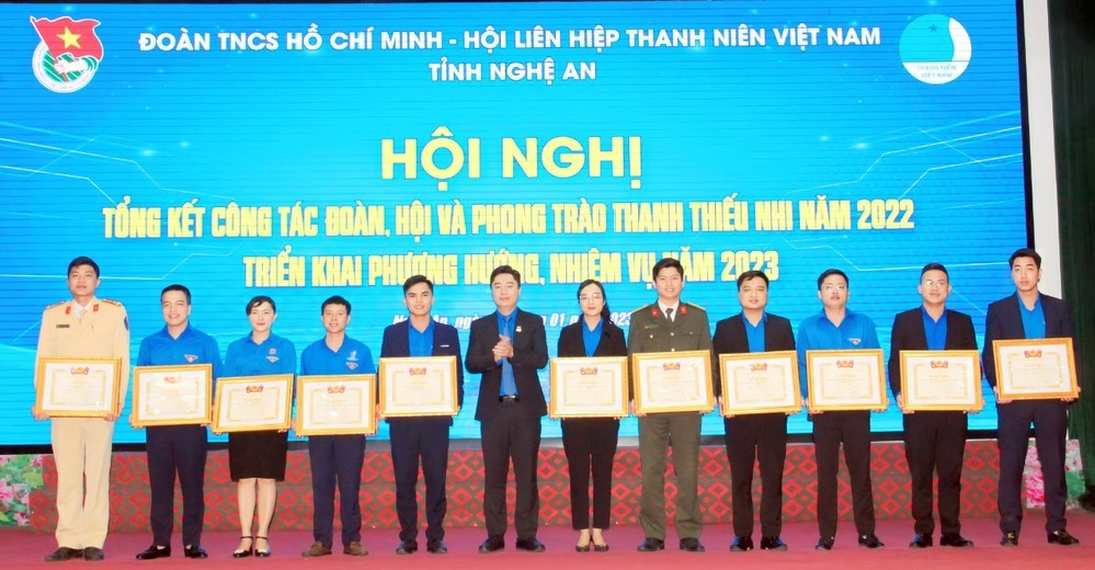 Thừa ủy quyền Trung ương Đoàn, Bí thư Tỉnh đoàn Nghệ An Lê Văn Lương trao tặng Bằng Khen của Ban Chấp hành Trung ương Đoàn cho các tập thể, cá nhân có thành tích xuất sắc trong năm 2022.