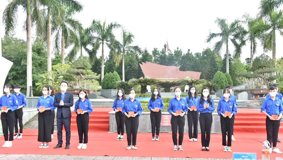 Bí thư BCH Trung ương Đoàn Nguyễn Tường Lâm, Bí thư BCH Trung ương Đoàn Nguyễn Phạm Duy Trang trao chứng nhận kết nạp đoàn viên và Huy hiệu Đoàn cho 20 đoàn viên tiêu biểu, đại diện cho lớp đoàn viên Lý Tự Trọng của tỉnh Hà Tĩnh.