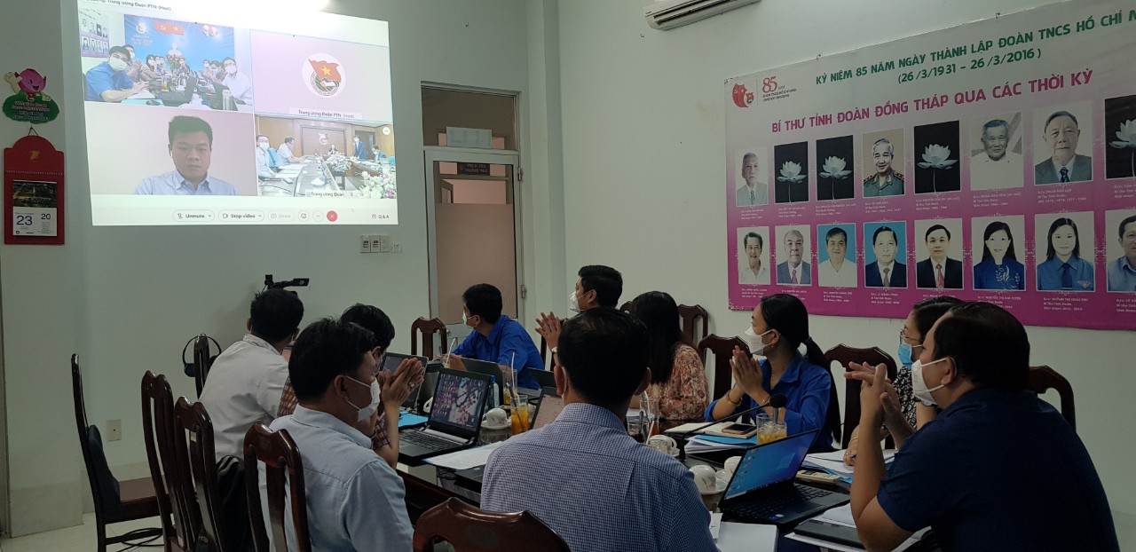 Tại điểm cầu tỉnh Đồng Tháp, thay mặt Ban Thường vụ Tỉnh đoàn, đồng chí Đỗ Thị Thanh Trang – Phó Bí thư Thường trực Tỉnh đoàn, Phó Trưởng Ban Thường trực Ban Tổ chức Đại hội đã báo cáo về công tác chuẩn bị, tiến độ tổ chức Đại hội Đoàn các cấp tiến tới Đại hội Đoàn tỉnh Đồng Tháp lần thứ XI. Theo đó, bám sát Kế hoạch số 411-KH/TWĐTN-BTC của Ban Chấp hành Trung ương Đoàn, Công văn số 527-CV/TU Ban Thường vụ Tỉnh ủy về việc Lãnh đạo đại hội Đoàn Thanh niên Cộng sản Hồ Chí Minh các cấp trong Tỉnh, nhiệm kỳ 2022-2027, Ban Thường vụ Tỉnh đoàn đã chủ động xây dựng kế hoạch và hướng dẫn Đại hội Đoàn các cấp tiến tới Đại hội Đoàn tỉnh Đồng Tháp lần thứ XI, nhiệm kỳ 2022 - 2027, đồng thời tổ chức hội nghị triển khai Đại hội Đoàn các cấp nhiệm kỳ 2022 – 2027.