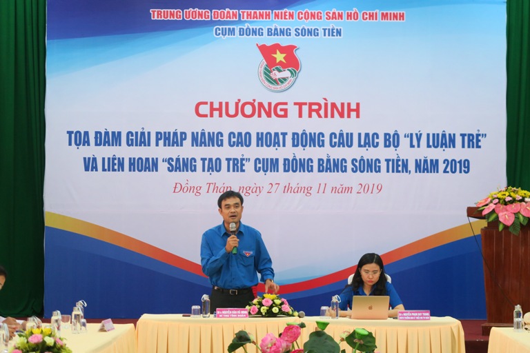 Phát biểu đề dẫn buổi tọa đàm, đồng chí Nguyễn Văn Vũ Minh - Bí Thư Tỉnh đoàn Đồng Tháp, Cụm trưởng cụm đồng bằng sông Tiền cho rằng trong suốt chiều dài lịch sử của dân tộc, thanh niên Việt Nam hết thế hệ này đến thế hệ khác đã luôn nêu cao tinh thần yêu nước, không ngại gian khổ, hy sinh, sẵn sàng dấn thân vì sự nghiệp dựng nước và giữ nước. Từ khi có Đảng và Bác Hồ lãnh đạo, rèn luyện, tuổi trẻ Việt Nam đã phát huy cao độ truyền thống anh hùng cách mạng, có nhiều đóng góp xứng đáng vào những thắng lợi vĩ đại của cách mạng Việt Nam. Đoàn Thanh niên Cộng sản Hồ Chí Minh không ngừng lớn mạnh, trưởng thành, làm tốt nhiệm vụ đoàn kết, tập hợp, giáo dục, vận động thanh niên tham gia các phong trào cách mạng. Tuy nhiên, bên cạnh vẫn còn một bộ phận thanh niên giảm sút niềm tin, thiếu lý tưởng cách mạng, sống thực dụng, xa rời truyền thống văn hoá tốt đẹp của dân tộc; một số ít thanh niên bị các thế lực thù địch lôi kéo, kích động chống phá sự nghiệp cách mạng của Đảng và dân tộc ta.