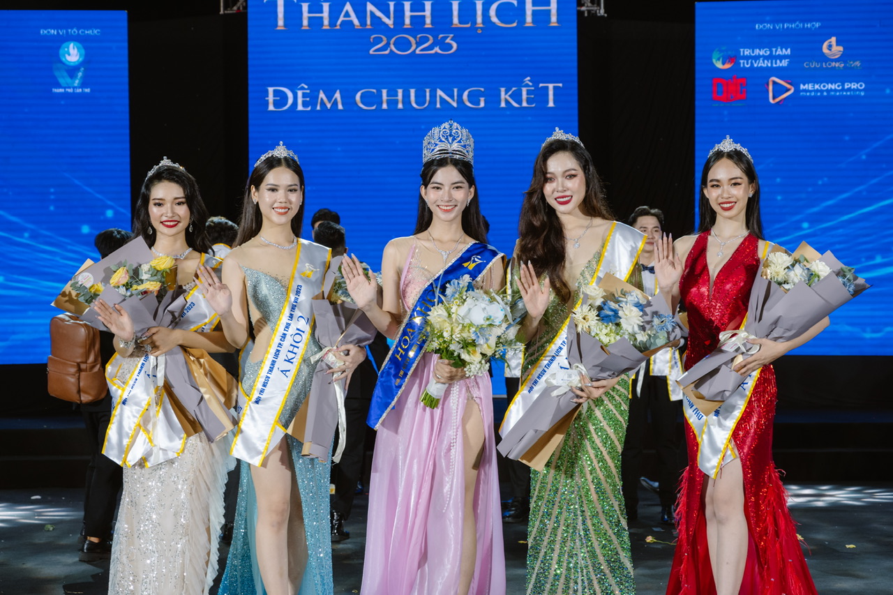 Đồng chí Đào Chí Nghĩa, Phó Trưởng Đoàn chuyên trách Đoàn đại biểu Quốc hội TP Cần Thơ (bìa trái) và Đồng chí Lư Thị Ngọc Anh (thứ 3 từ phải qua), Bí thư Thành đoàn Cần Thơ, Hoa Hậu Việt Nam 2022 – Huỳnh Thị Thanh Thủy (trang phục đỏ) và Miss Ngôi Sao 2013 Lê Minh Thy Thơ trao giải Hoa khôi cho thí sinh Phan Lê Kim Ngọc (thứ 3 từ trái qua).