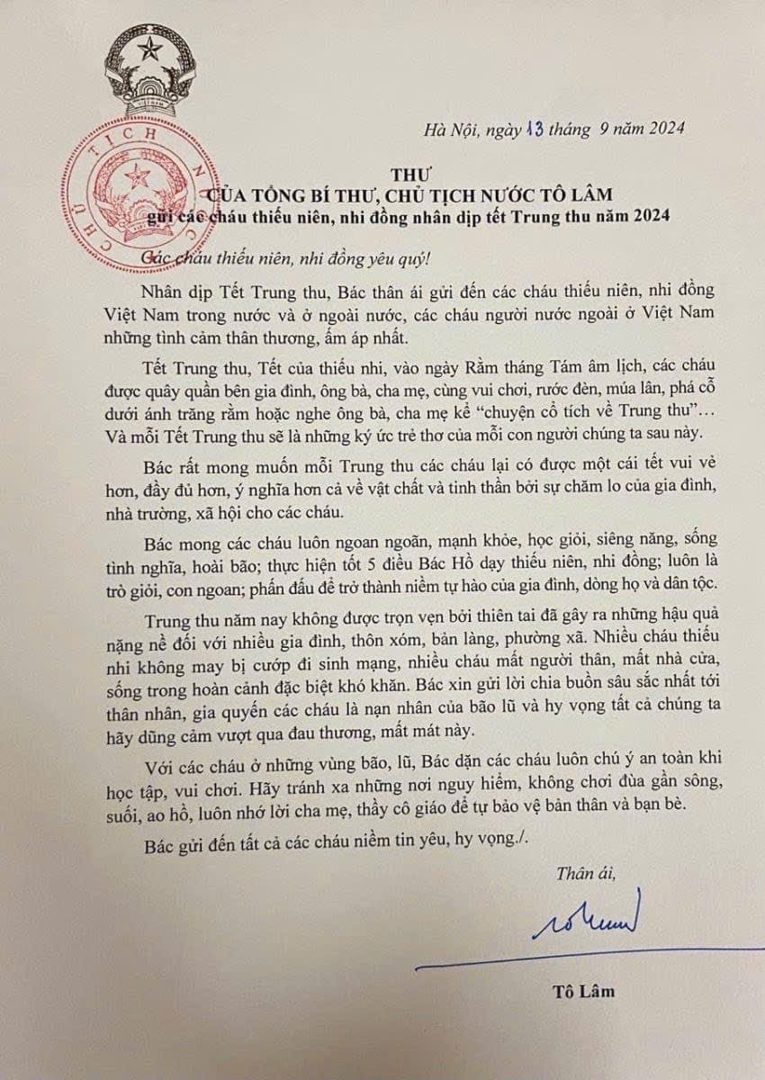 gửi các cháu thiếu niên, nhi đồng nhân dịp Tết Trung thu năm 2024