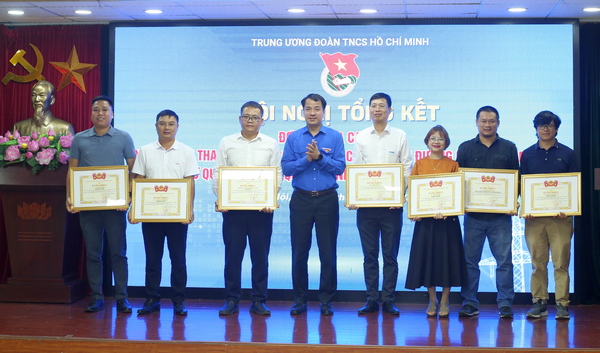 Đồng chí Bùi Quang Huy, Bí thư thư thư nhất TƯ Đoàn tặng Bằng khen cho 05 đơn vị, gồm: Tỉnh đoàn: Quảng Bình, Hà Tĩnh, Nghệ An, Thanh Hóa, Hưng Yên tại Hội nghị