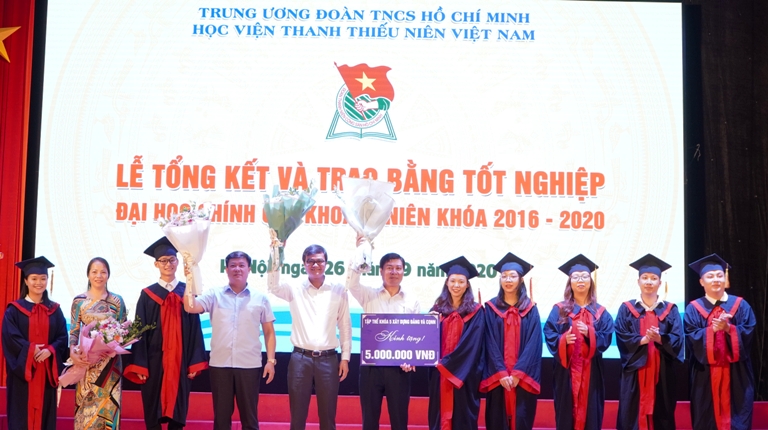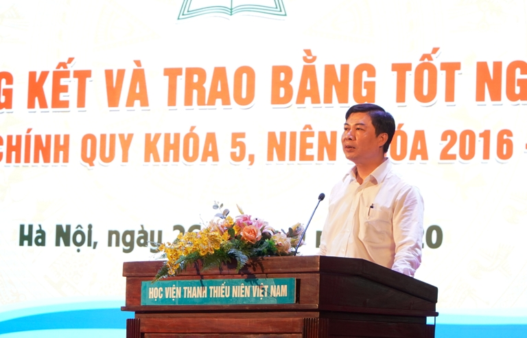 Phát biểu tại Lễ tổng kết, đồng chí Nguyễn Hải Đăng, Bí thư Đảng ủy, Giám đốc Học viện chúc mừng các tân cử nhân khóa 5 và mong muốn với khối lượng kiến thức và các kỹ năng đã được Học viện trang bị, các em sẽ tự tin thích ứng với nhiều vị trí công tác khác nhau trong xã hội; tiếp tục phấn đấu rèn luyện để khẳng định bản thân, qua đó khẳng định giá trị chất lượng đào tạo của Học viện thanh thiếu nhiên Việt nam.