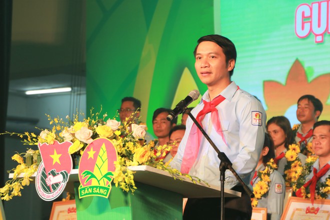 Bí thư T.Ư Đoàn, Chủ tịch Hội đồng Đội T.Ư Nguyễn Ngọc Lương phát biểu tại buổi lễ tuyên dương