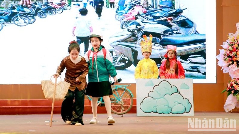 Các em học sinh biểu diễn nhiều tiểu phẩm về an toàn giao thông