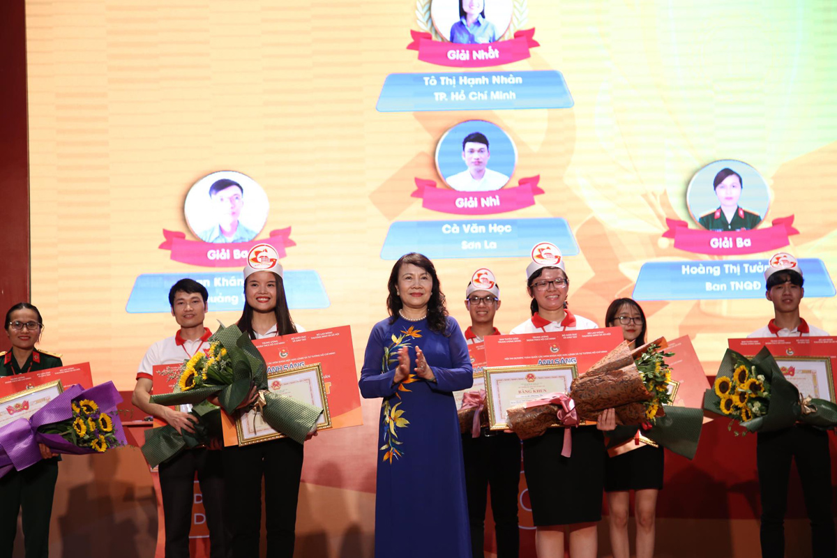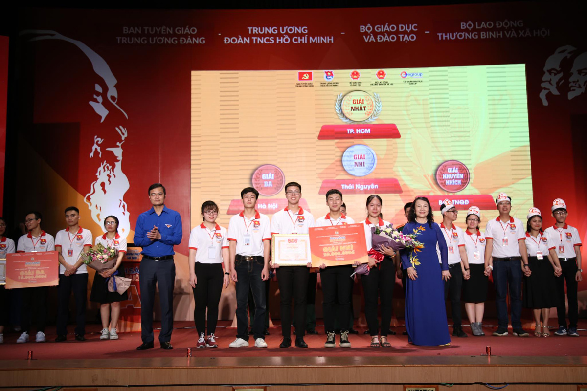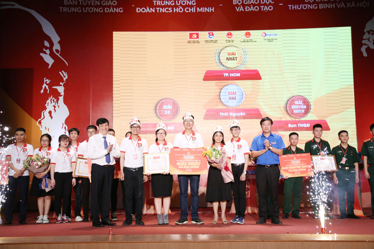 Bí thư thứ nhất TƯ Đoàn, Chủ tịch TƯ Hội LHTN Việt Nam Lê Quốc Phong; Phó trưởng Ban Tuyên giáo Trung ương Nguyễn Thanh Long trao Giải nhất bảng thi đội tuyển cho đội Tp. Hồ Chí Minh.