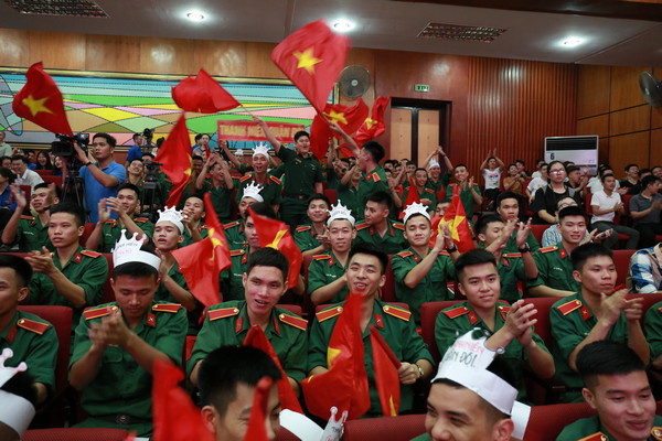 Đông đảo cổ động viên đội tuyển Ban thanh niên Quân đội cổ vũ tại đêm chung kết