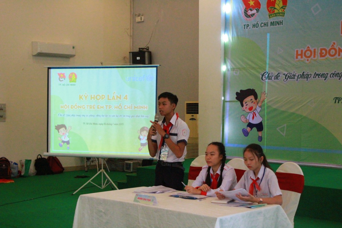Hội đồng Trẻ em thành phố đã tổ chức kỳ họp với chủ đề "Đội viên, học sinh thành phố chung tay bảo vệ môi trường, chủ đề "Giải pháp trong công tác phòng chống bạo lực và xâm hại trẻ em".