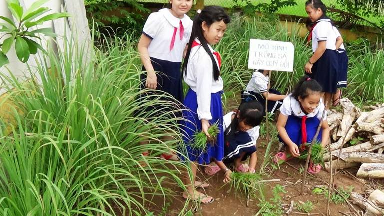 Mô hình trồng sả gây quỹ Đội của Liên đội trường TH Hiếu Trung B, huyện Tiểu Cần