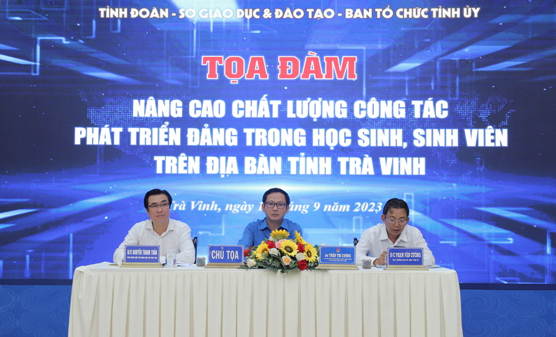 Phát biểu đề dẫn tại Tọa đàm, đồng chí Trần Trí Cường, Ủy viên Ban Chấp hành Trung ương Đoàn, Bí thư Tỉnh đoàn cho biết công tác phát triển đảng trên địa bàn tỉnh Trà Vinh trong thời gian qua luôn được các cấp uỷ đảng, các ngành quan tâm và đạt nhiều kết quả tích cực. Từ năm 2017 đến năm 2022 có 5466 Đảng viên mới kết nạp từ đoàn viên ưu tú (chiếm 60,3% đảng viên mới trong toàn Đảng bộ tỉnh), trong đó khu vực trường học là 445 đảng viên (chiếm 8,15%); tỷ lệ đảng viên được kết nạp là học sinh sinh viên tăng đều qua các năm, cụ thể từ 10% năm 2018 lên 20,8% năm 2022. Tuy nhiên kết quả này vẫn chưa tương xứng với tiềm năng của khối đối tượng học sinh, sinh viên. Đồng thời đồng chí cũng hy vọng rằng Tọa đàm sẽ ghi nhận được nhiều ý kiến tham luận, thảo luận của đại biểu nhằm đưa ra các giải phát thiết thực, hiệu quả để góp phần ngày càng nâng cao công tác phát triển Đảng là học sinh, sinh viên trên địa bàn tỉnh.
